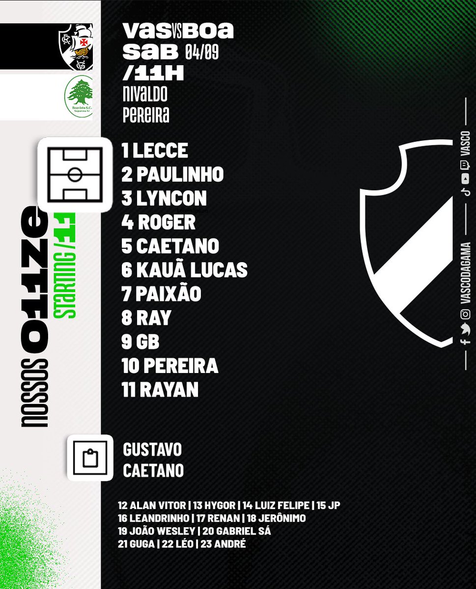 04/09/21 - Infantil: Confira a escalação do Vasco para o jogo contra o Boavista