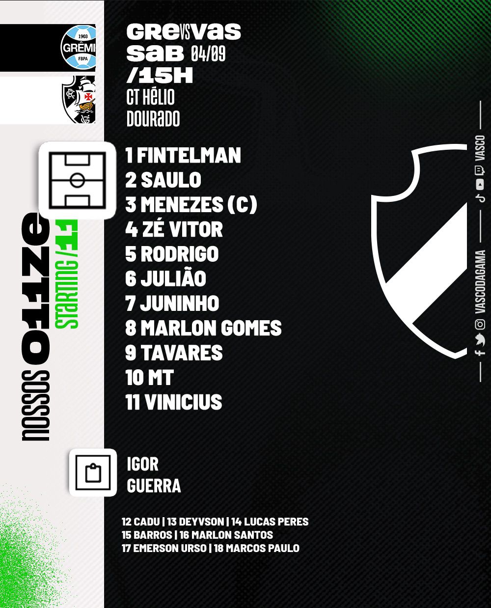 Juniores: Confira a escalação do Vasco para o jogo contra o Grêmio