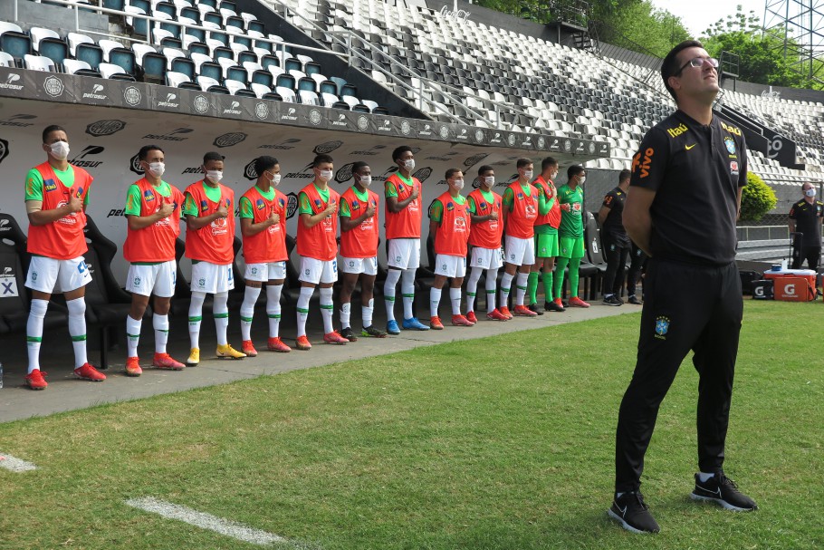 Em seguida, entraram na equipe Matheus Gonçalves e Caio. o Brasil conseguiu ter mais posse, mas ainda sofria com a disposição tática albirroja.