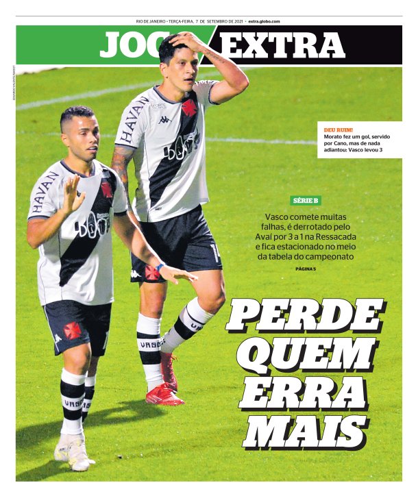 Veja as capas dos jornais após Avaí 3 x 1 Vasco