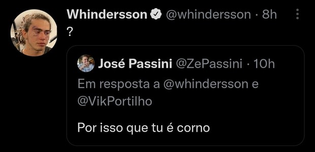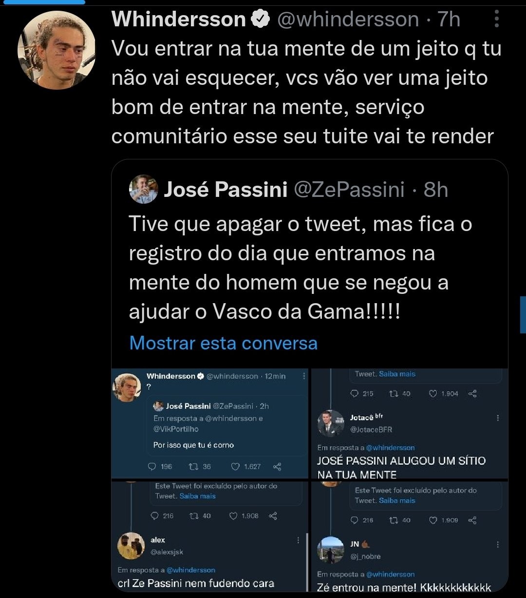 Foi, então, que o jornalista esportivo José Passini se meteu e acusou o humorista de não contribuir por ter sido traído. "Por isso tu é [sic] corno", escreveu, mas depois apagou: "Mas fica o registro do dia em que entramos na mente do homem que se negou a ajudar o Vasco da Gama".