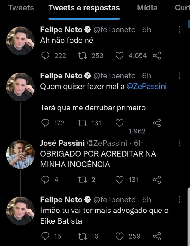 Whindersson, inconformado, rebateu, dando a entender que iria processar o jornalista, quando Felipe Neto tomou o partido de Passini. "Quem quiser falar mal do Passini terá que me derrubar primeiro. Irmão, tu vai [sic] ter mais advogado que o Eike Batista", afirmou.