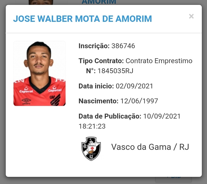 Walber é registrado no BID da CBF