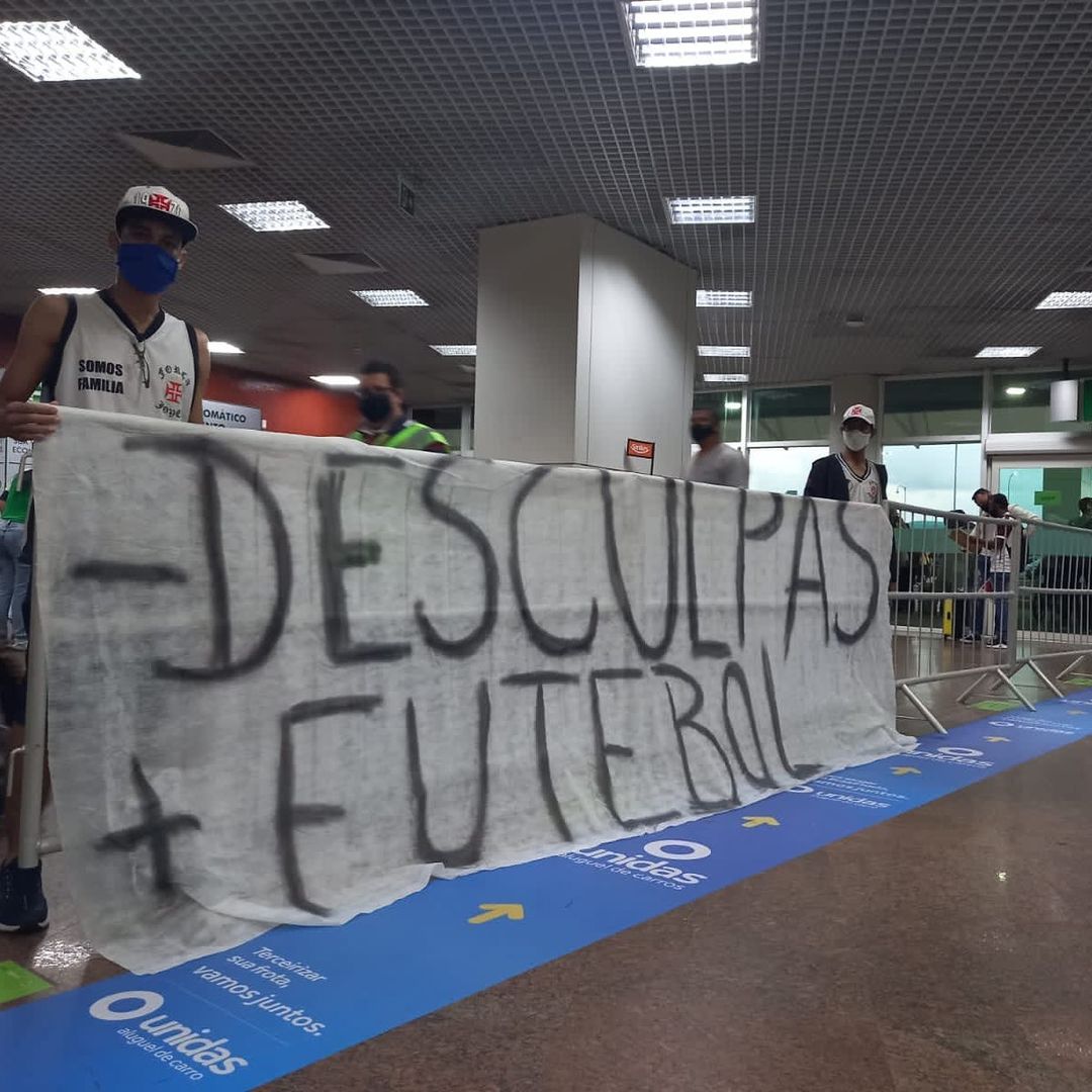 Torcedores protestam com faixa no aeroporto de Maceió