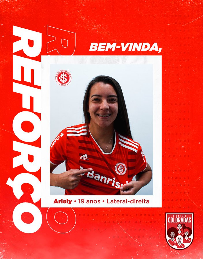 O time feminino do Internacional tem um novo reforço. Trata-se da lateral direita Ariely, de apenas 19 anos, que pertencia ao Vasco da Gama, do Rio de Janeiro. A jogadora, que já teve cadastro no Boletim Informativo Diário (BID) da CBF realizado, chega em definitivo para reforçar o elenco das Gurias Coloradas. O anúncio foi feito na tarde desta quinta-feira (16).