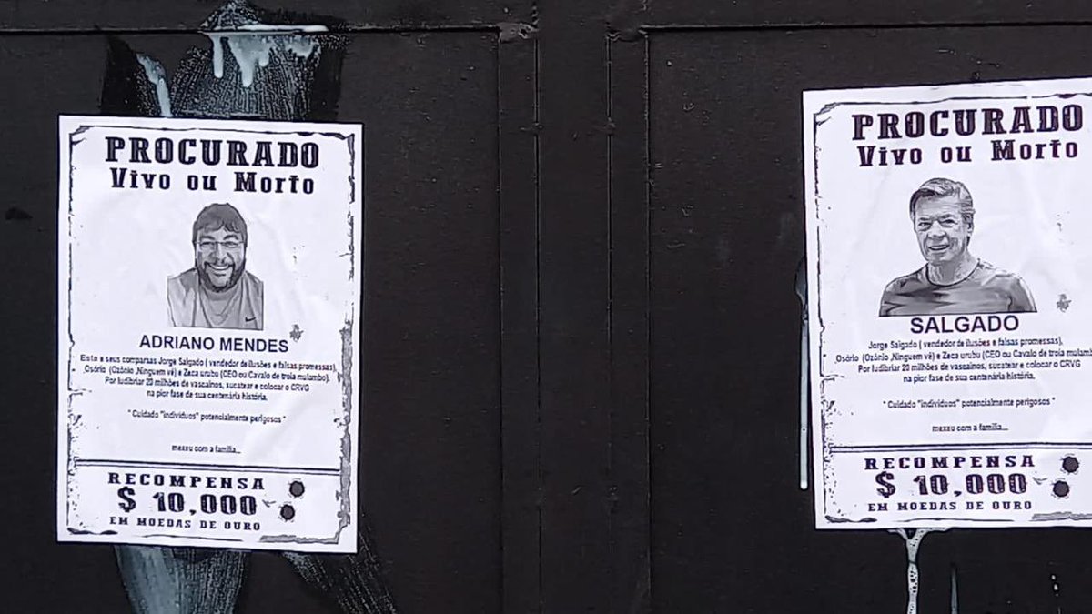 Cartazes e pichações em São Januário em protesto contra a diretoria do Vasco.