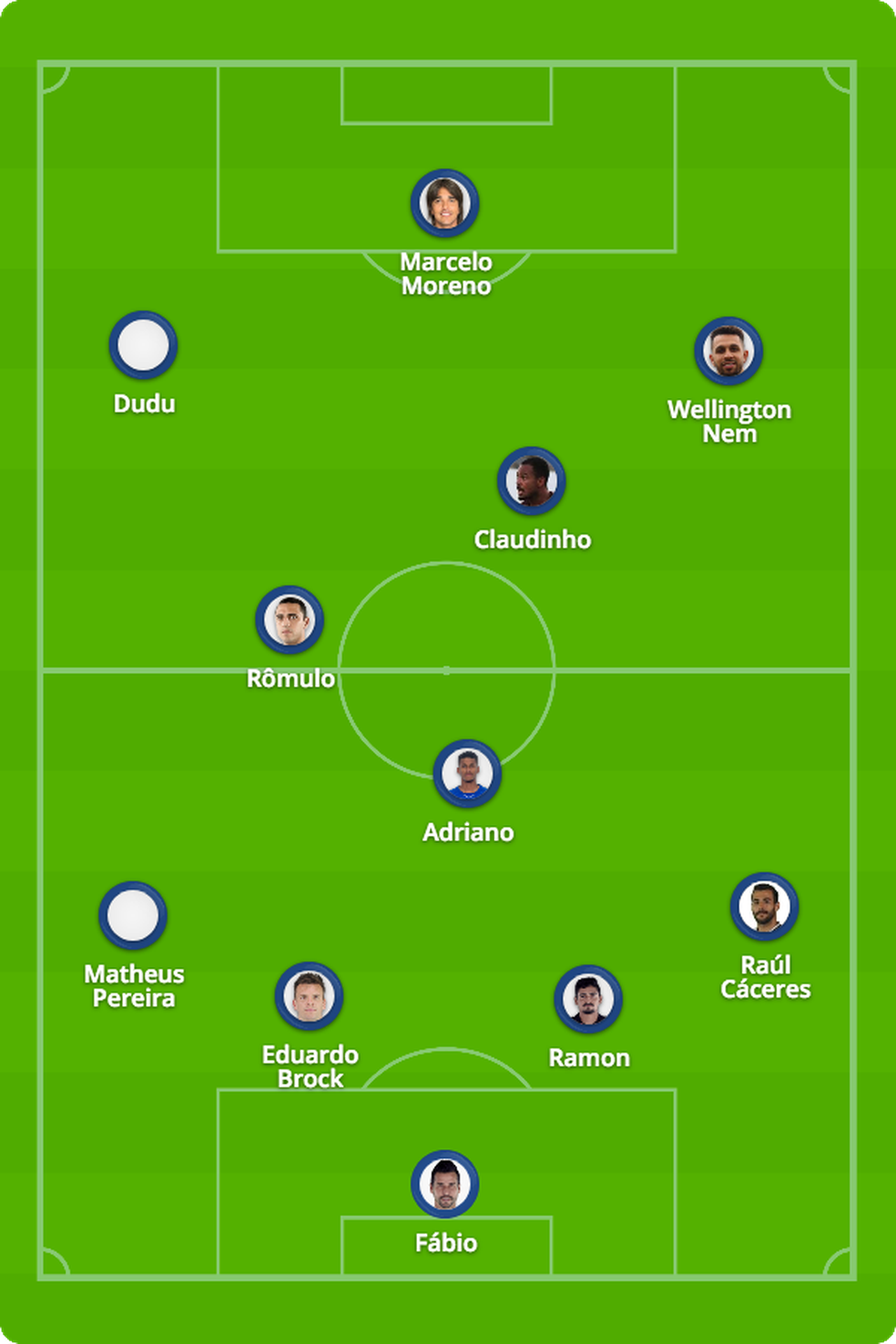 Provável escalação: Fábio; Cáceres; Ramon, Eduardo Brock e Matheus Pereira; Adriano, Rômulo e Claudinho; Wellington Nem, Dudu e Marcelo Moreno.