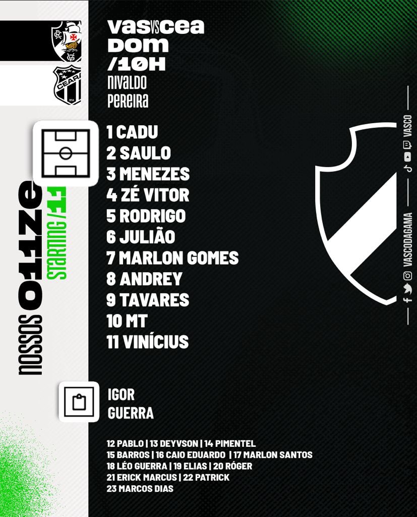 Vasco escalado para enfrentar o Ceará, pelo Brasileirão Sub-20, no Nivaldo Pereira: