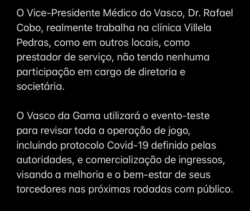 Bom dia Jovens! Dentre o abusivo valor do ingresso do jogo uma coisa me chamou atenção. Porquê aceitar teste somente de um local? Fui investigar o Villela Pedras e descobri que o VP Médico do Vasco Rafael Cobo trabalha na Clínica. O que o @VascodaGama tem a dizer sobre isso?