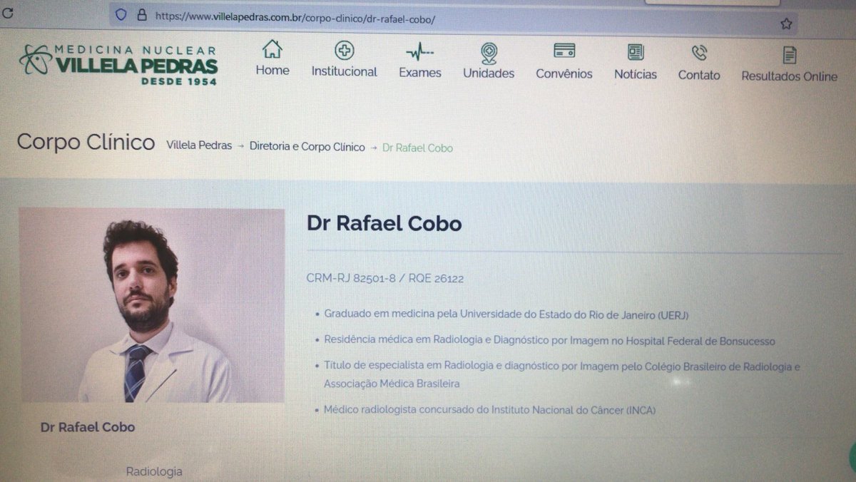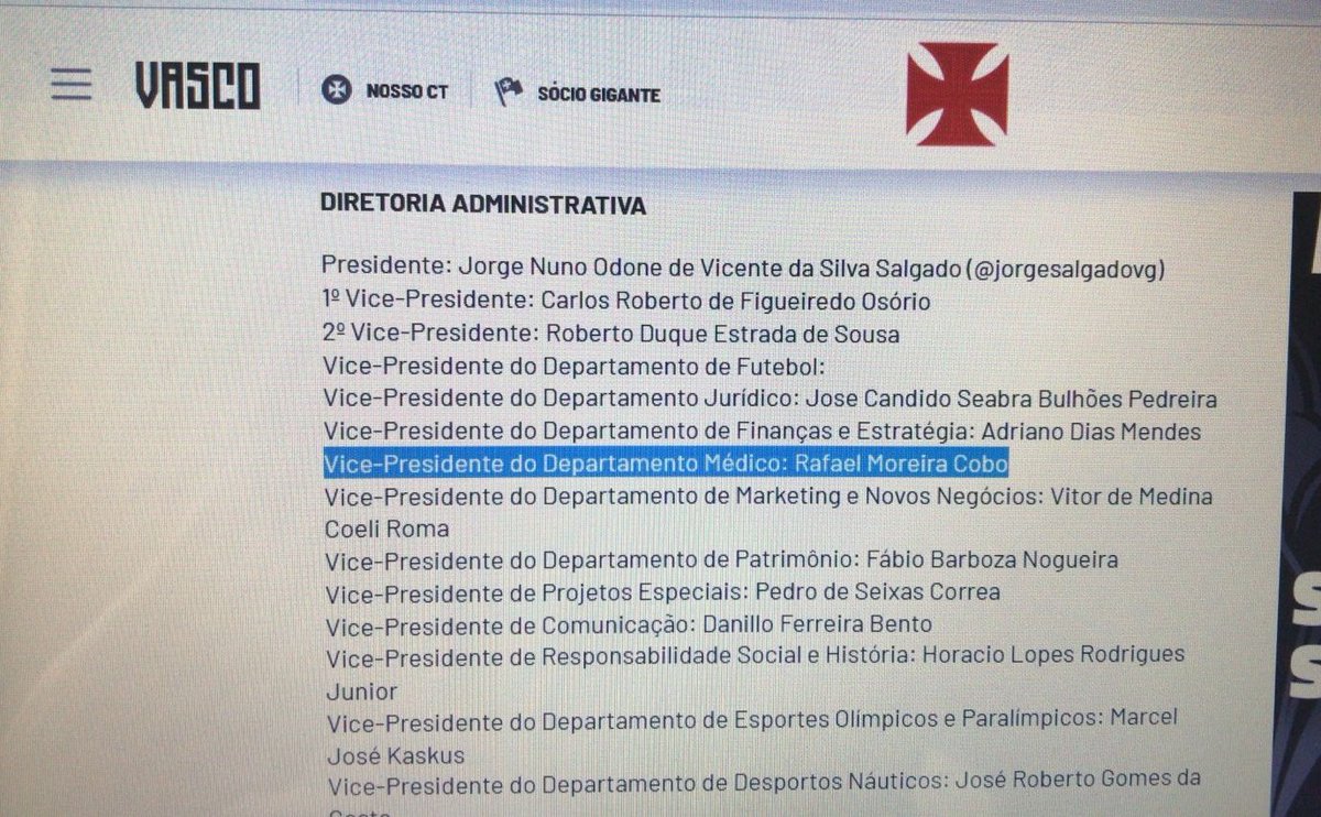 O Vice-Presidente Médico do Vasco, Dr. Rafael Cobo, realmente trabalha na clínica Villela Pedras, como em outros locais, como prestador de serviço, não tendo nenhuma participação em cargo de diretoria e societária.