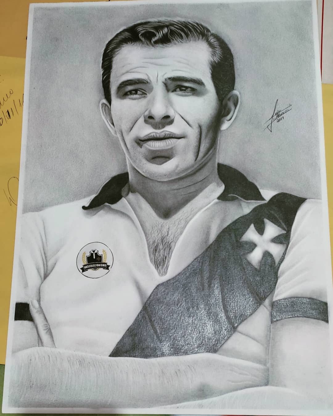 Quem sabe faz e acontece! Desenho artístico a mão livre do talentoso João Marcos (artista local), replicando a imagem do multicampeão pelo Vasco em 1952, 1956, 1957 e 1958, Vavá.