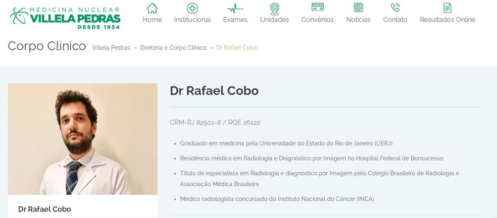 O Vice-Presidente Médico do Vasco, Dr. Rafael Cobo, realmente trabalha na clínica Villela Pedras, como em outros locais, como prestador de serviço, não tendo nenhuma participação em cargo de diretoria e societária.