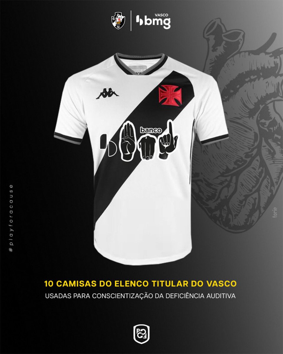 Vasco inicia leilão de camisas de campanha para coscientização da deficiência auditiva.