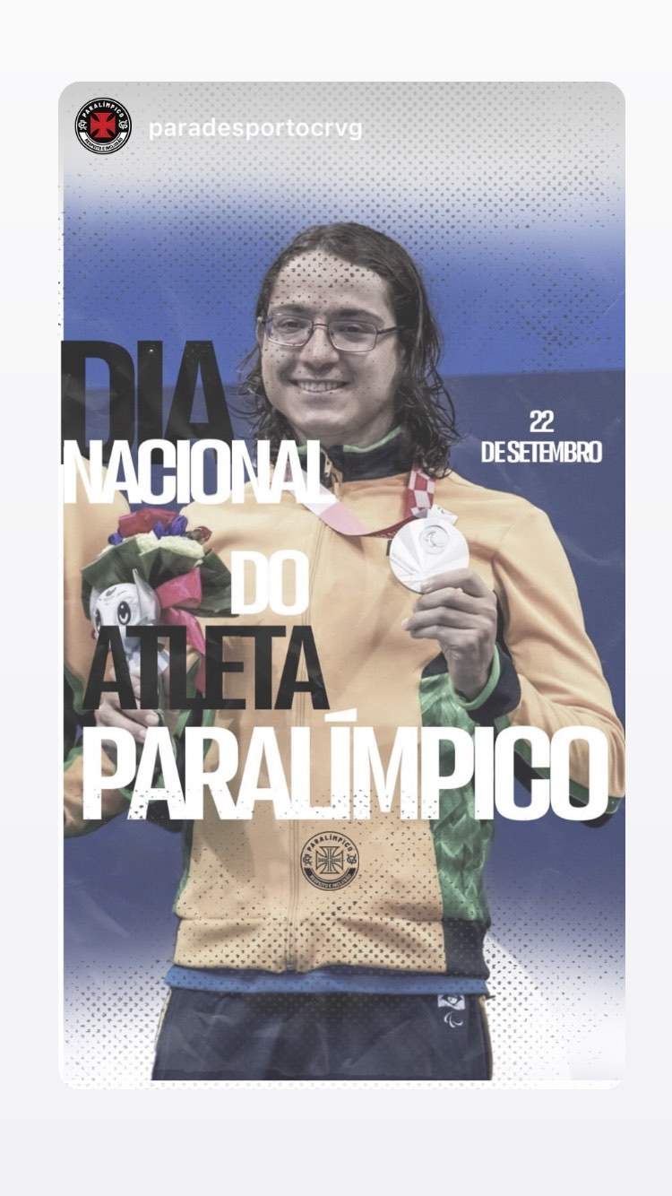 Vasco lembra o Dia Nacional do Atleta Paralímpico, que é comemorado em 22/09