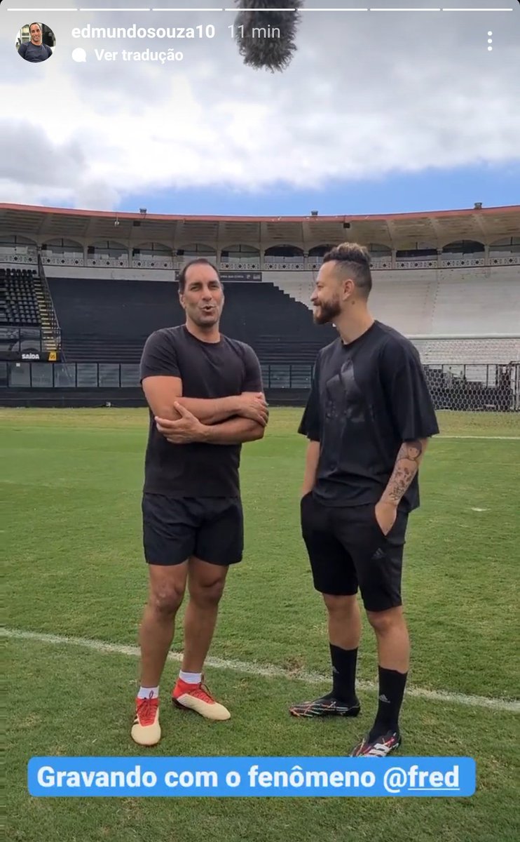 O ídolo @edmundosouza7 e o @fred_b12, do @desimpedidos, estão gravando em São Januário.