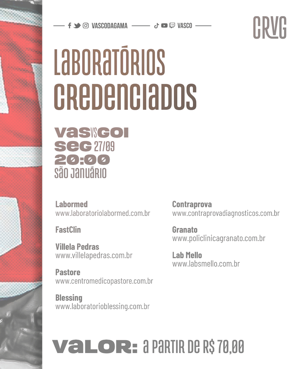Vasco alerta que prazo para a realização do exame é de até 48h antes do jogo contra o Goiás