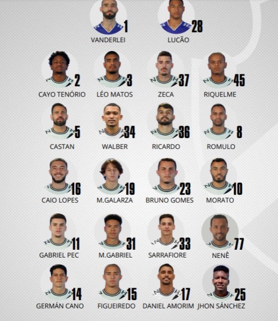 Falta pouco para a bola rolar para Brusque x Vasco. Confira os relacionados pelo técnico Fernando Diniz. A novidade é Galarza. #Jogada10