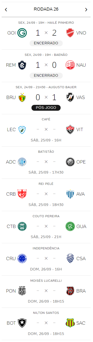 Com a vitória por 1 a 0 sobre o Brusque, o Vasco dorme em 7º lugar e a 7 pontos do G4 no Brasileiro da Série B. Ainda faltam 7 jogos para o fim da 26ª rodada.