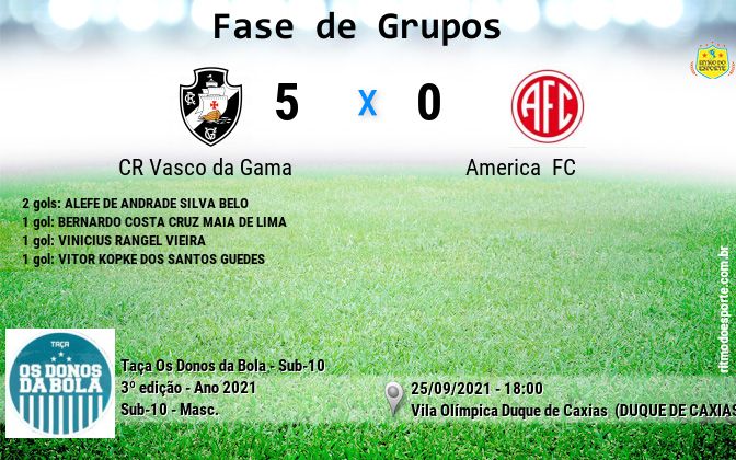 Pré-Mirim: Vasco goleia o America por 5 a 0 pela Taça Os Donos da Bola Sub-10