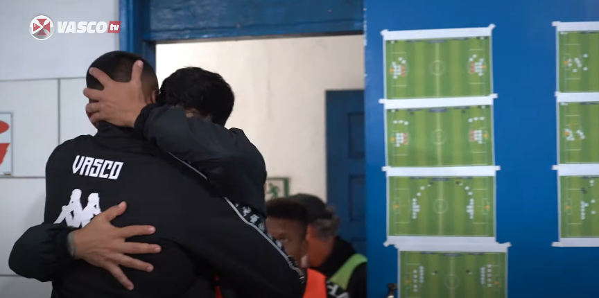 Expulso durante o jogo, o lateral Léo Matos fez questão de receber cada integrante do grupo no vestiário após a partida.
