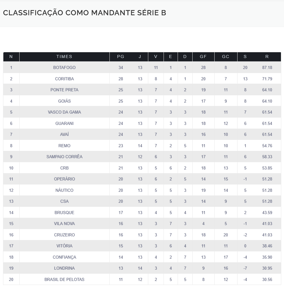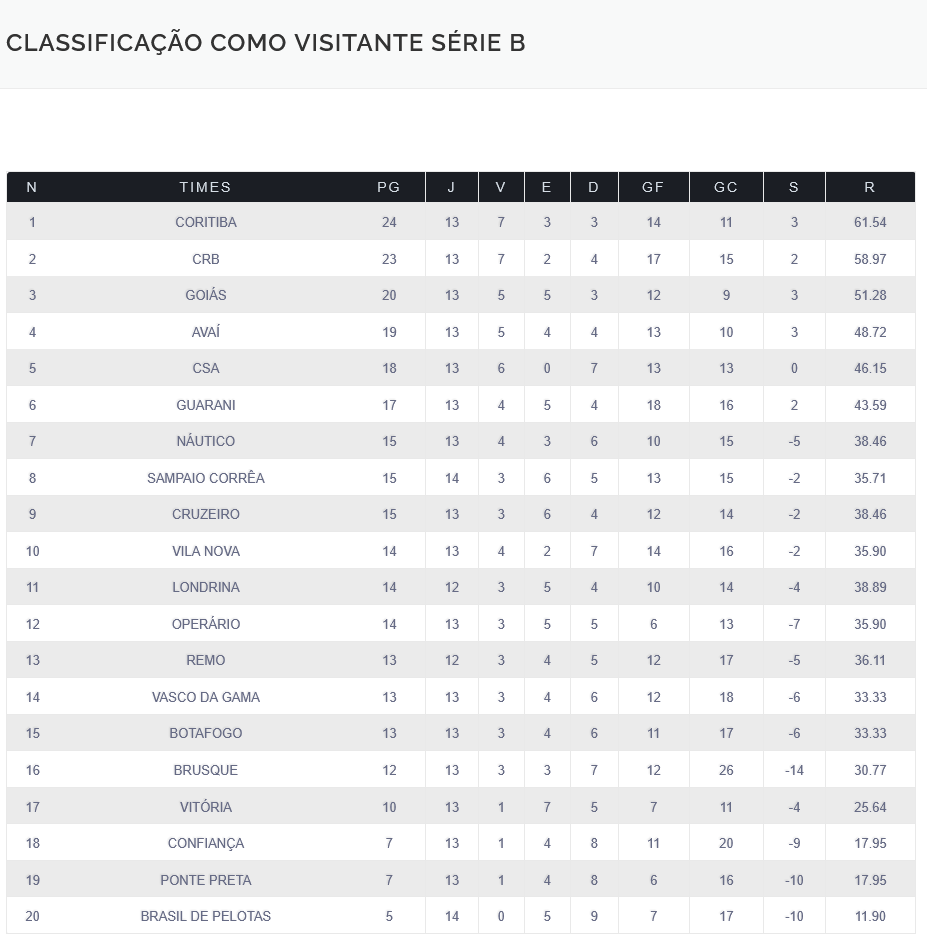 O Vasco é o 5º melhor mandante e o o 7º pior visitante do Campeonato Brasileiro da Série B de 2021. Veja as classificações abaixo.