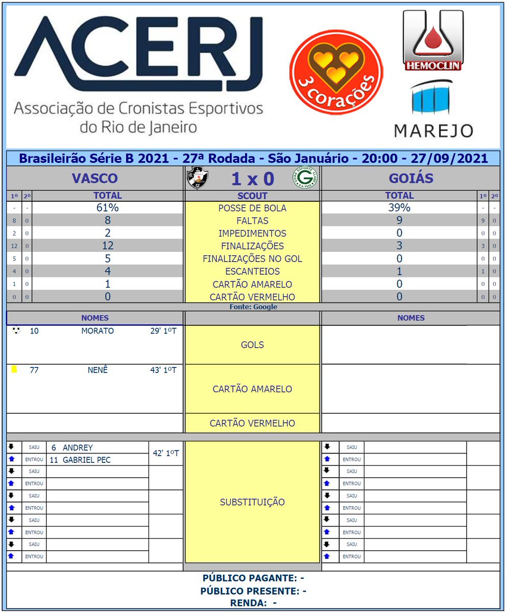 Scout do 1º Tempo de Vasco e Goiás pela 27ª Rodada do Campeonato Brasileiro da Série B 2021 em São Januário (Fonte: Google) #BrasileiraoSerieB #acerjinforma #VASxGOI #Vasco #Goiás @BrasileiraoB @VascodaGama @goiasoficial
