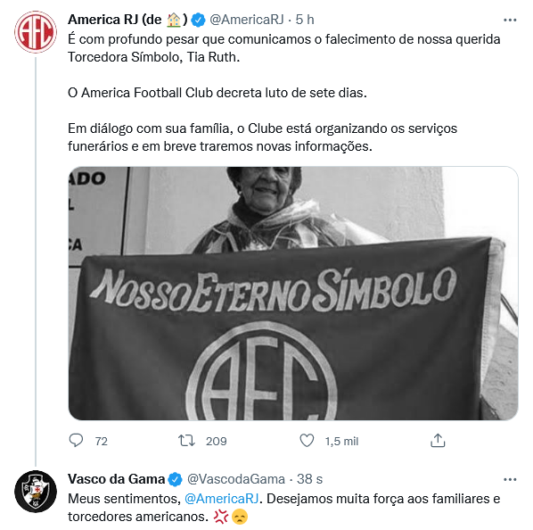 Fonte: Twitter oficial do América, Twitter oficial do Vasco
