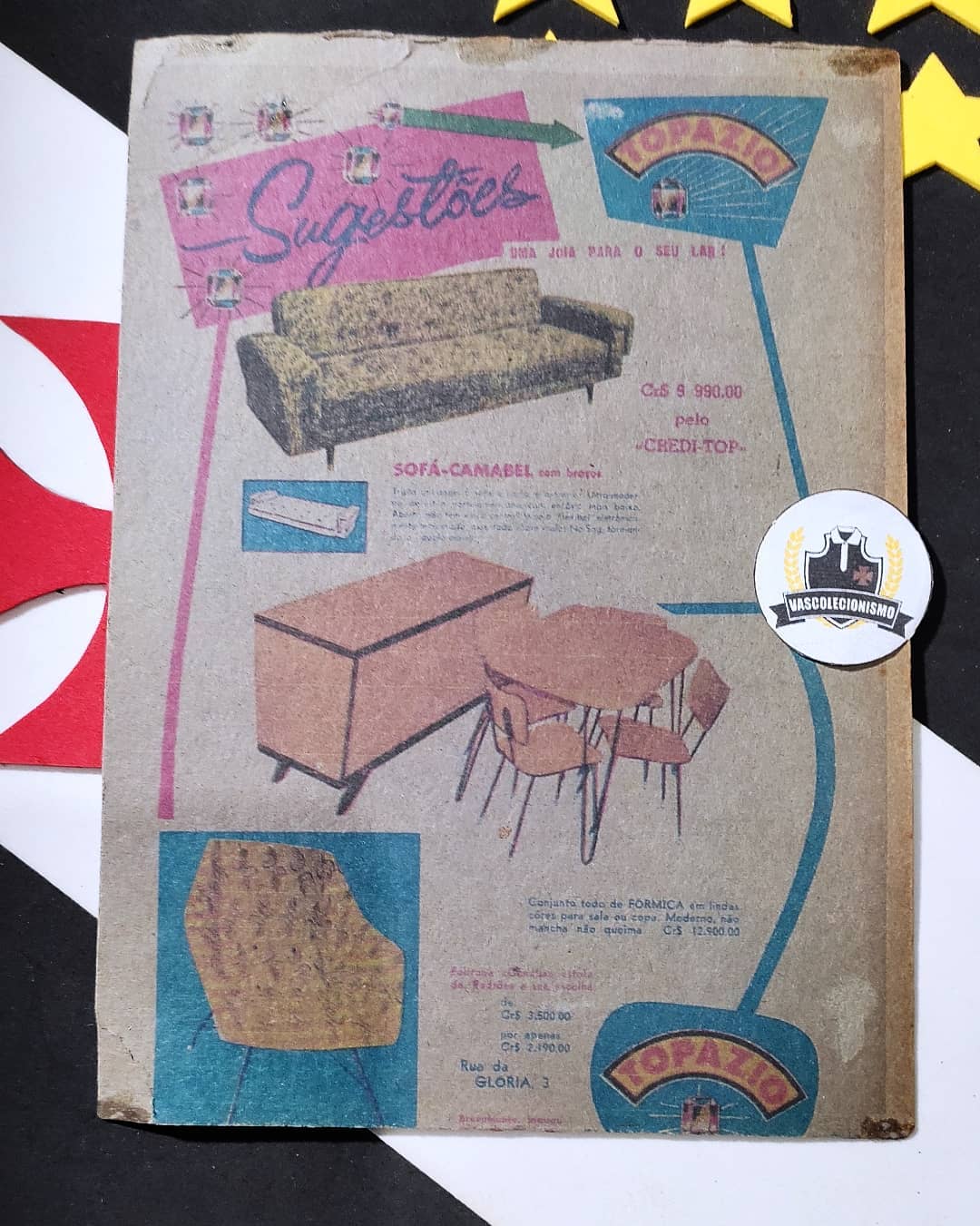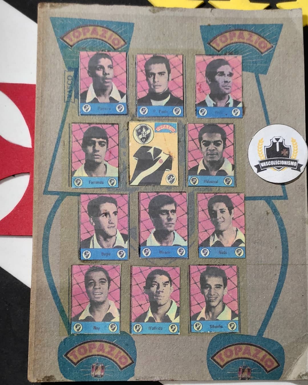 Cartela com figurinhas do Club de Regatas Vasco da Gama do ano de 1968, promocional das lojas de móveis Topázio.