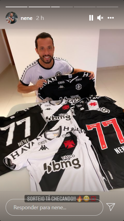 Nenê mostra as camisas do Vasco que sorteará em seu Instagram