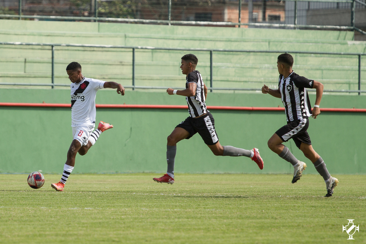 A primeira boa chance do Vasco veio aos 2 minutos, com Rayan. O atacante ganhou na velocidade, invadiu a área, mas acabou travado pelo goleiro. Aos 5, o adversário abriu o placar: 1 a 0. O Cruzmaltino respondeu aos 12, Rayan recebeu na direita, puxou pra dentro e bateu rasteiro, obrigando o goleiro a fazer boa defesa. Aos 16, Kevyn Taylon lançou, Guilherme, que chapelou o zagueiro e tocou em Rayan. O camisa 11 chutou no cantinho e quase empatou.