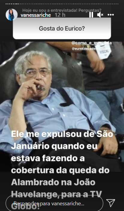 Vanessa Riche diz que Eurico a expulsou de São Januário na cobertura da queda do alambrado em 2000