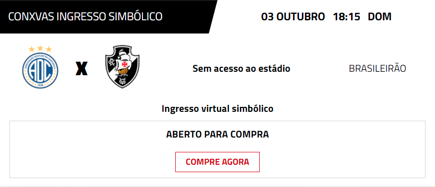 O Vasco está vendendo ingressos virtuais simbólicos para o jogo contra o Confiança.
