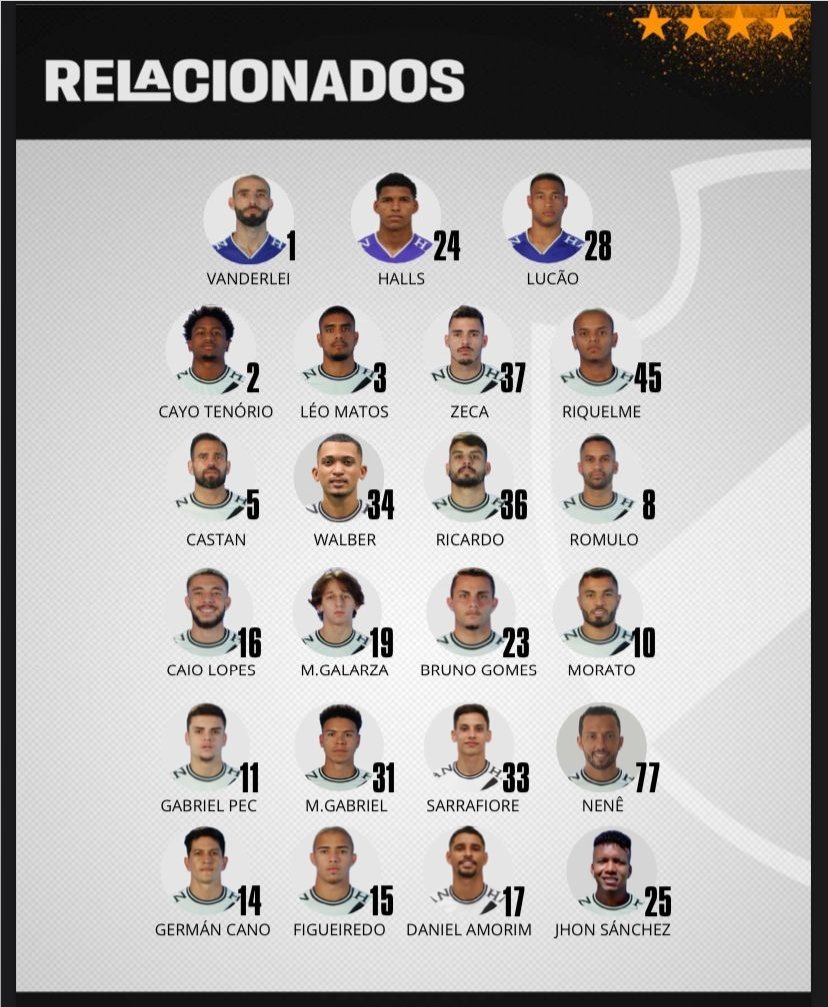 Confira os relacionados do Vasco para o jogo contra o Confiança