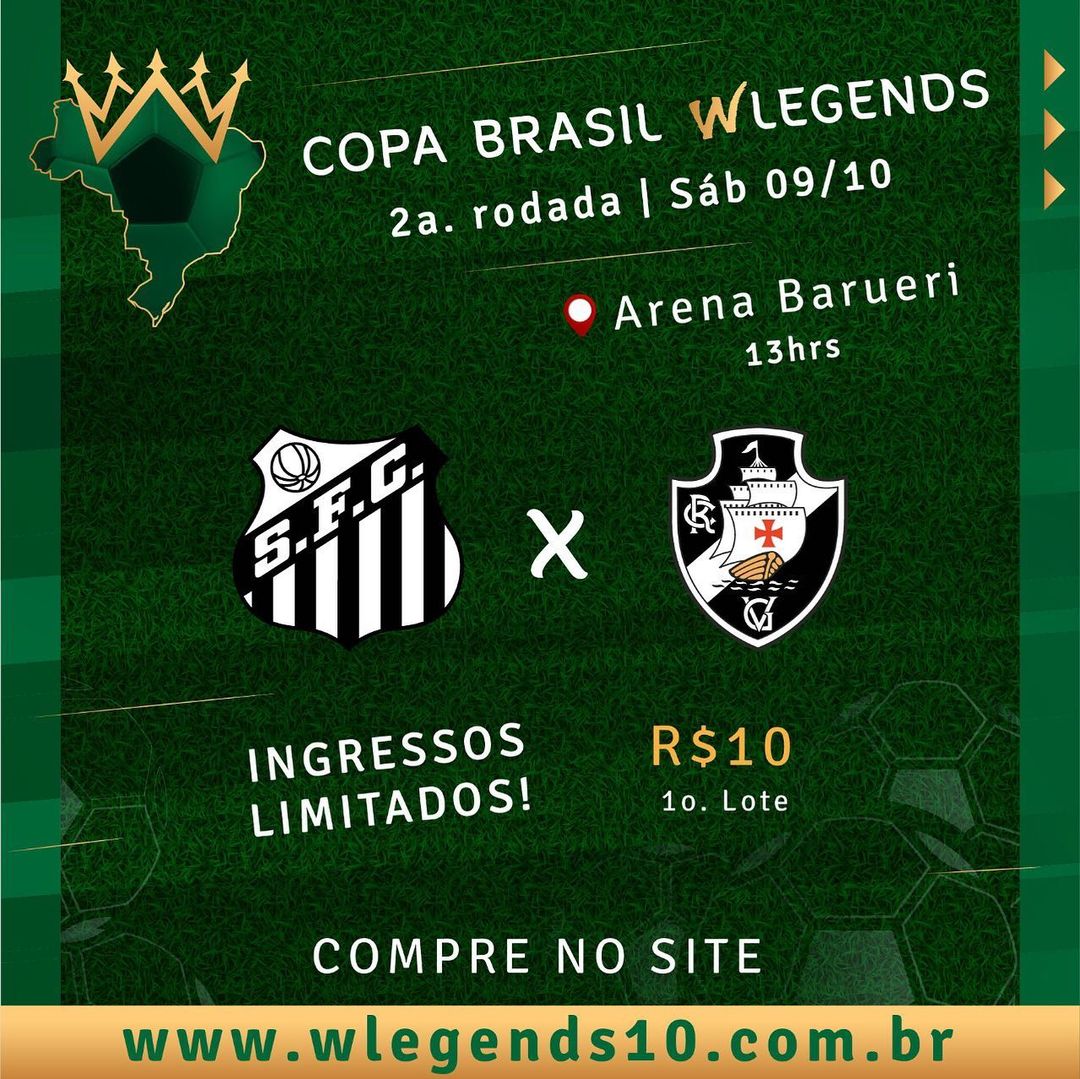 Masters: Vasco enfrenta o Santos no sábado pela Copa Brasil WLegends; ingressos estão à venda