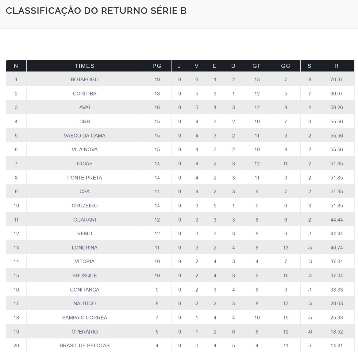 Vasco tem a 5ª melhor campanha do returno do Brasileiro da Série B
