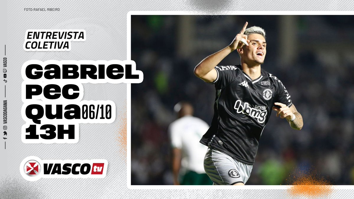 Nesta quarta-feira, às 13h, teremos a entrevista coletiva com o meia atacante Gabriel Pec na VascoTV. 💢📺