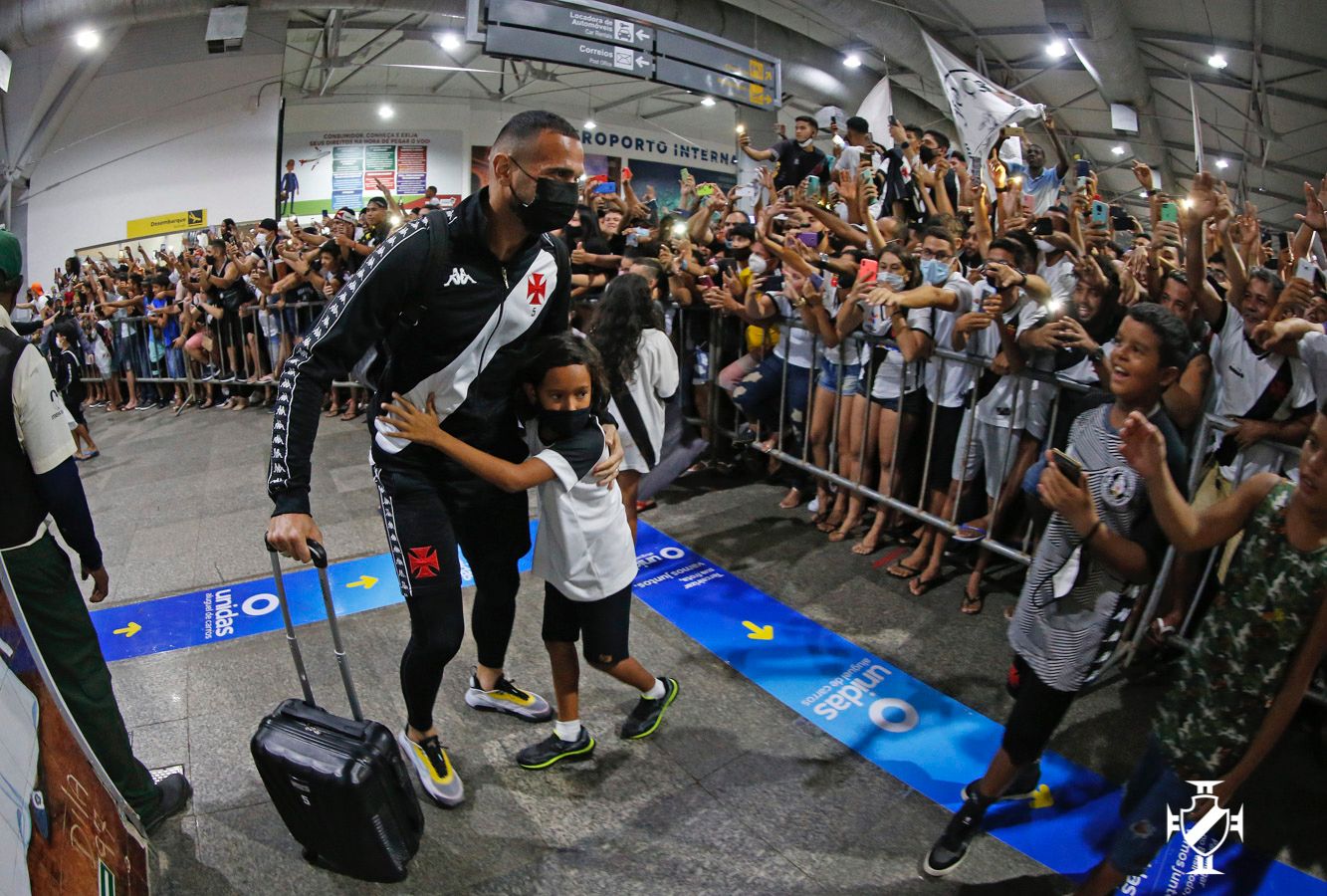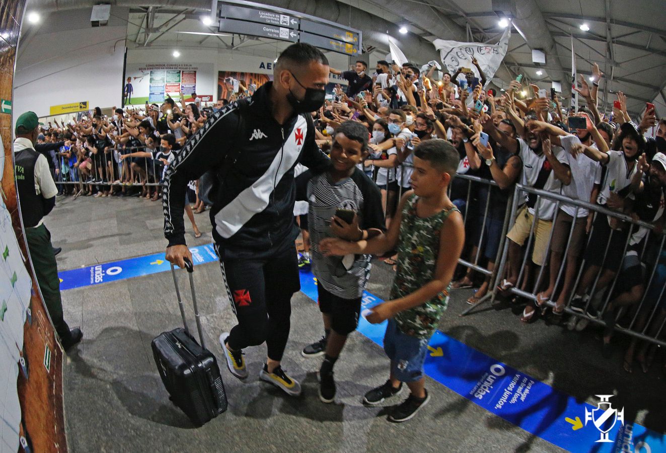 A delegação vascaína desembarcou em São Luís, capital do Maranhão e foi recebida com muita festa na noite da última quinta-feira (07/10). Assim como em Aracaju, a torcida cruzmaltina deu mais um verdadeiro show e voltou a mostrar que o Nordeste carrega a cruz de malta no peito. Uma multidão compareceu ao Aeroporto Internacional Marechal Cunha Machado para recepcionar o Gigante da Colina. Ao chegar na capital maranhense, o meia Nenê realizou uma live com seus seguidores em uma de suas redes sociais. Durante o contato com os torcedores, o camisa 77 chegou a abraçar o artilheiro Germán Cano, que retribuiu o carinho saudando os seguidores do meia o fazendo o sinal do L, marca carimbada do argentino.