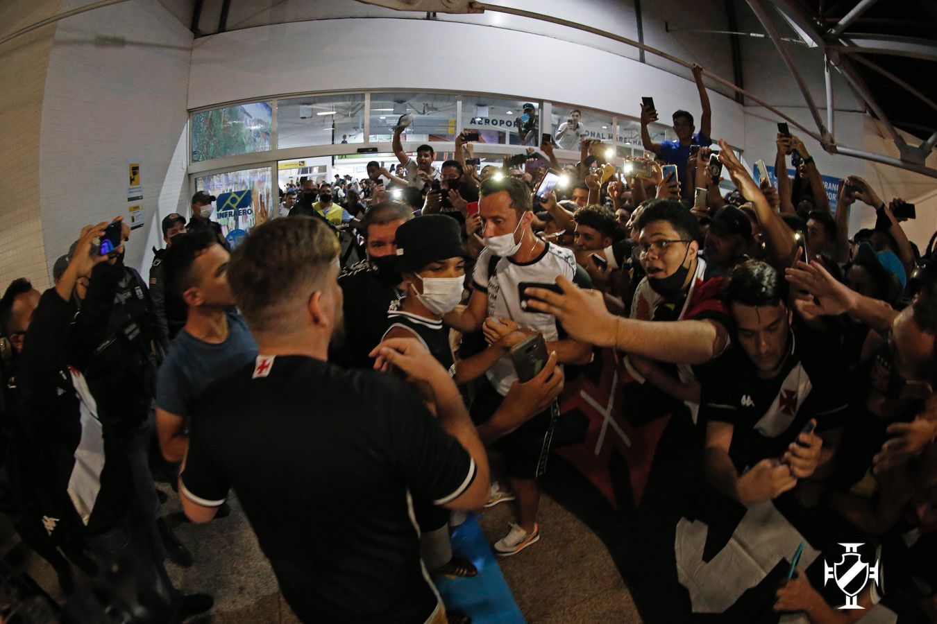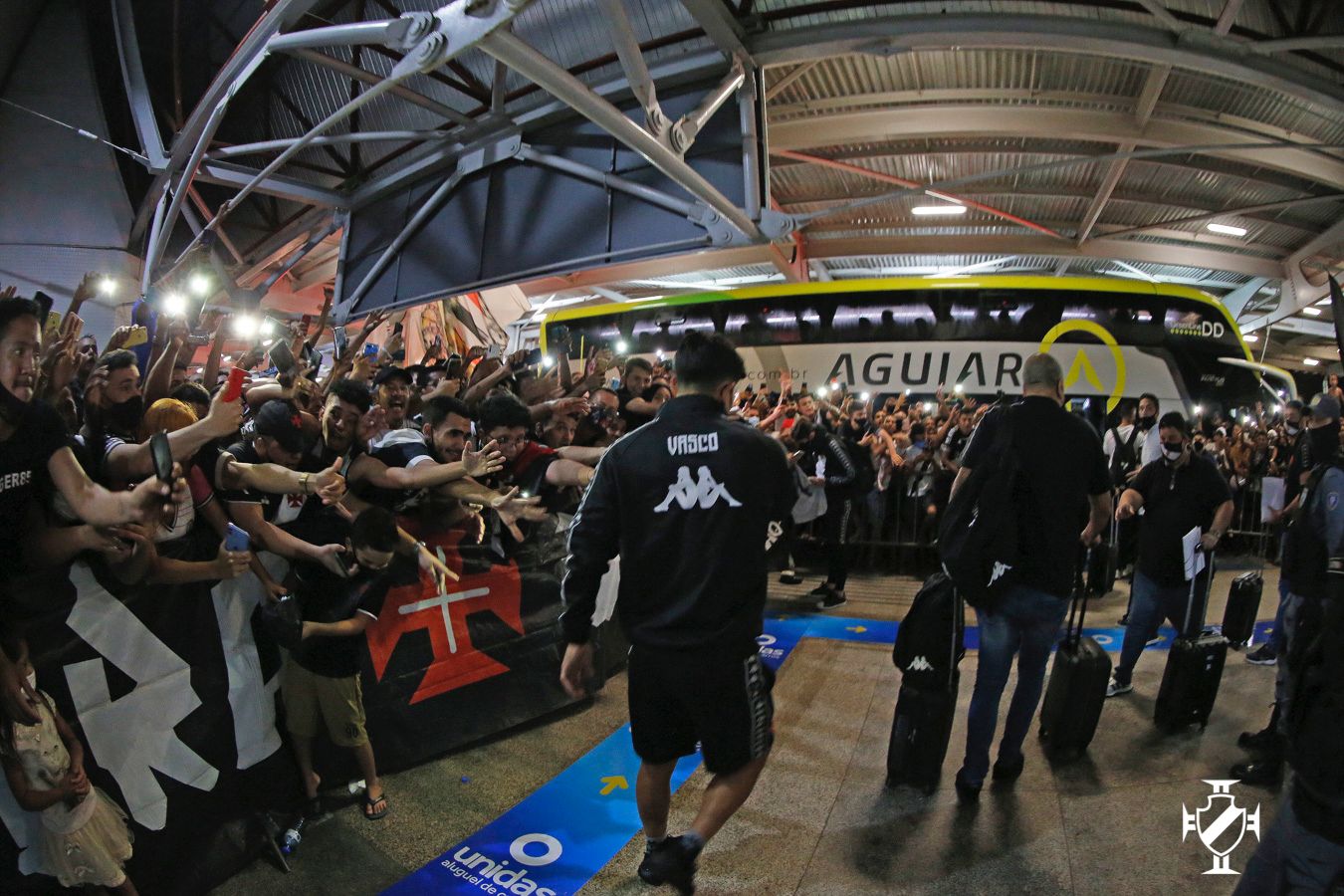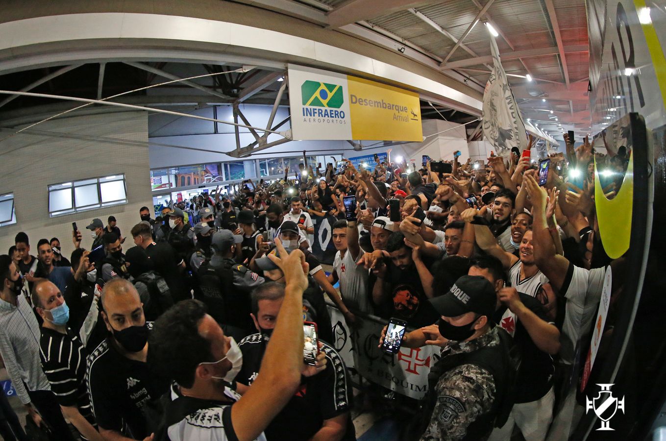 Antes mesmo dos jogadores aparecerem no saguão, os vascaínos cantavam músicas de apoio e declaravam amor ao clube com a história mais bonita do futebol. A euforia se tornou ainda maior após os atletas e membros da comissão técnica aparecerem. Jogadores importantes da equipe cruzmaltina, Leandro Castan, Nenê e Germán Cano não passaram em branco. Os atletas receberam abraços calorosos da torcida e retribuíram o carinho esbanjando simpatia, posando para muitas fotos e distribuíram autógrafos.