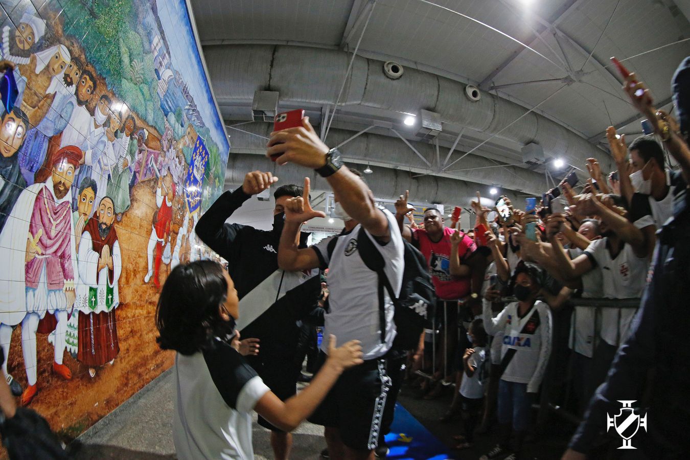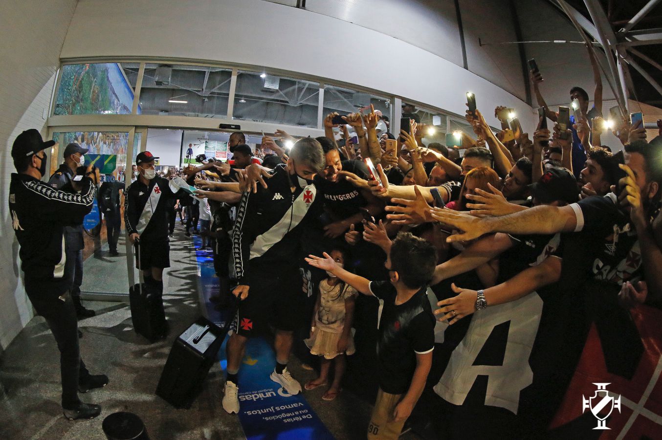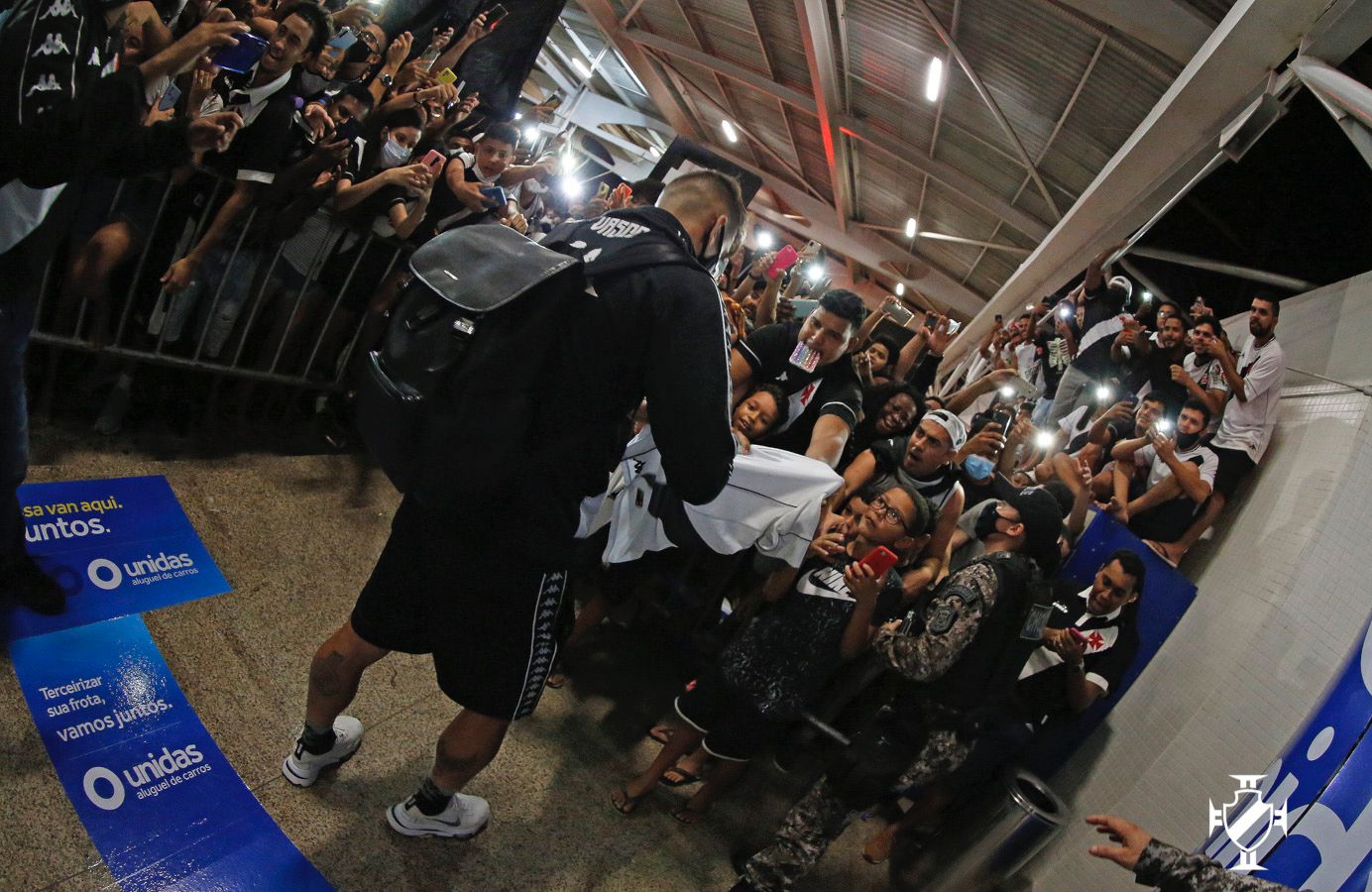 Antes mesmo dos jogadores aparecerem no saguão, os vascaínos cantavam músicas de apoio e declaravam amor ao clube com a história mais bonita do futebol. A euforia se tornou ainda maior após os atletas e membros da comissão técnica aparecerem. Jogadores importantes da equipe cruzmaltina, Leandro Castan, Nenê e Germán Cano não passaram em branco. Os atletas receberam abraços calorosos da torcida e retribuíram o carinho esbanjando simpatia, posando para muitas fotos e distribuíram autógrafos.
