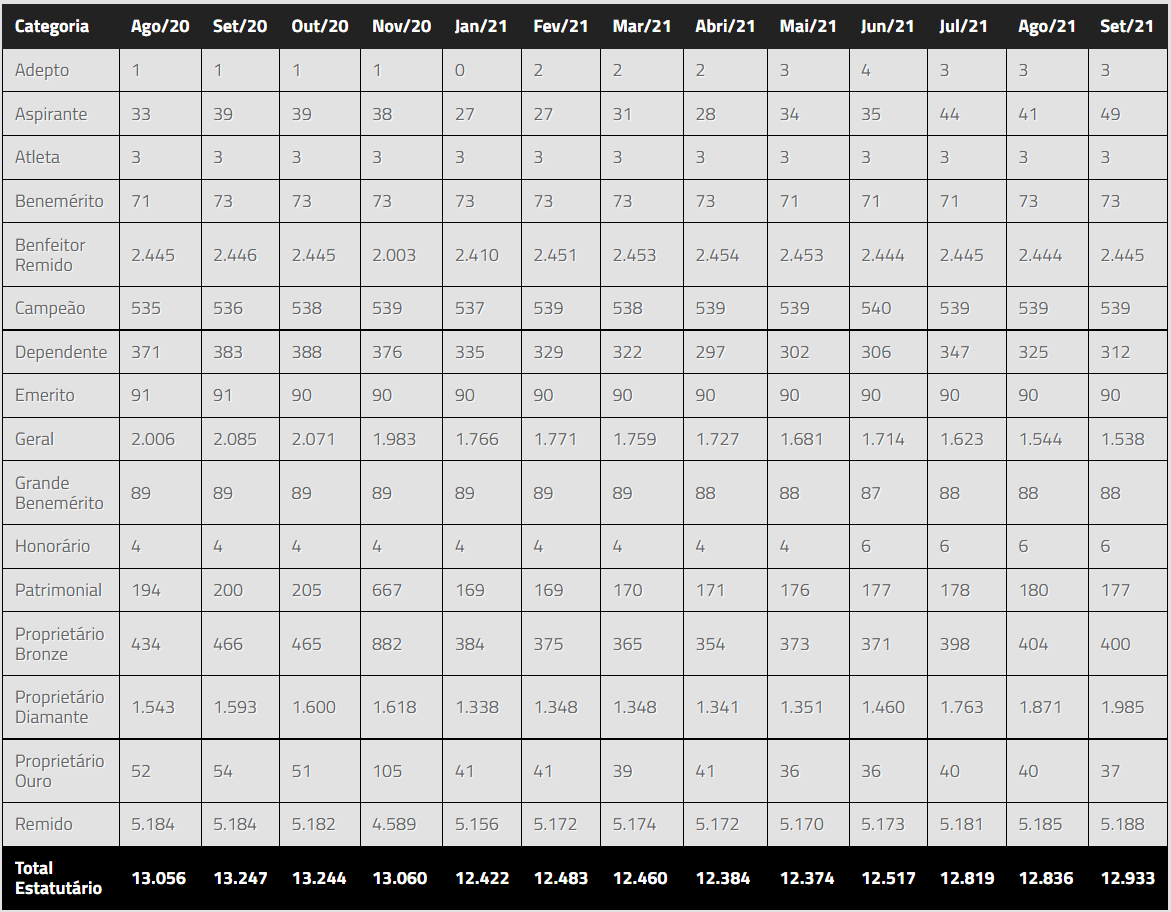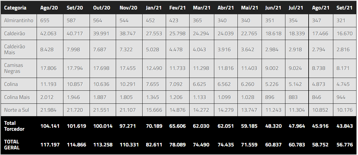 10/09/21 - Vasco fechou agosto com 58.752 sócios, sendo 45.916 sócios-torcedores; veja números e lista