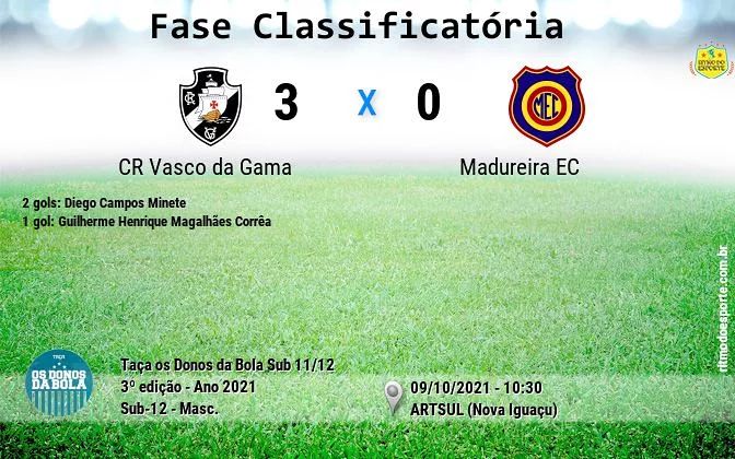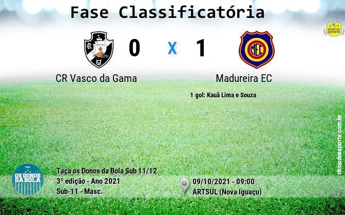 Pela Taça Os Donos da Bola, Vasco vence o Madureira no Sub-12 e perde no Sub-11