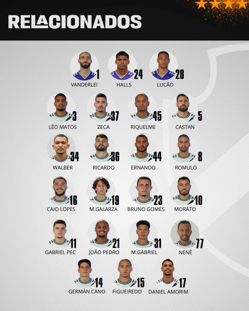 Os relacionados do Vasco para a partida contra o Sampaio Corrêa. Ernando e João Pedro são as novidades. Andrey já voltou a treinar com o grupo durante a semana, mas ficou no Rio para forcar na recuperação e ficar 100% para o próximo jogo. #VascoENM