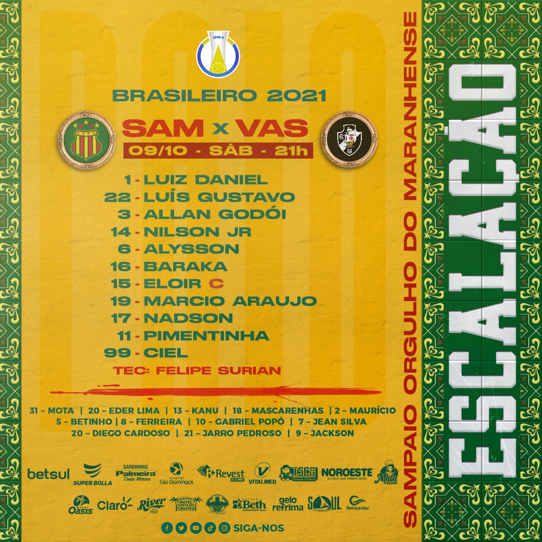 Veja a escalação do Sampaio Corrêa para o jogo contra o Vasco
