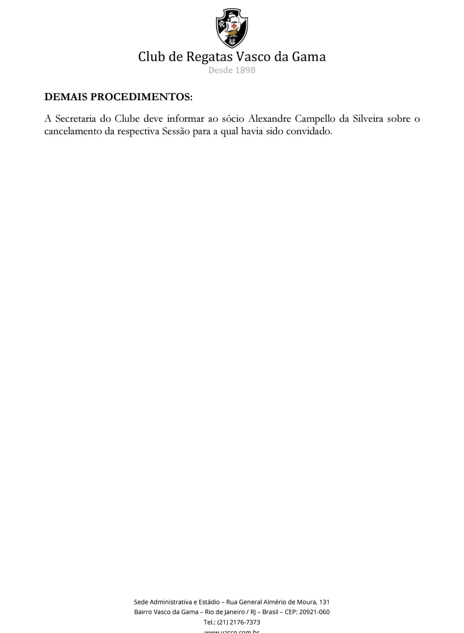 30/06/21 - Resgata Vasco divulga como votou na reunião do Conselho Deliberativo de 28/06