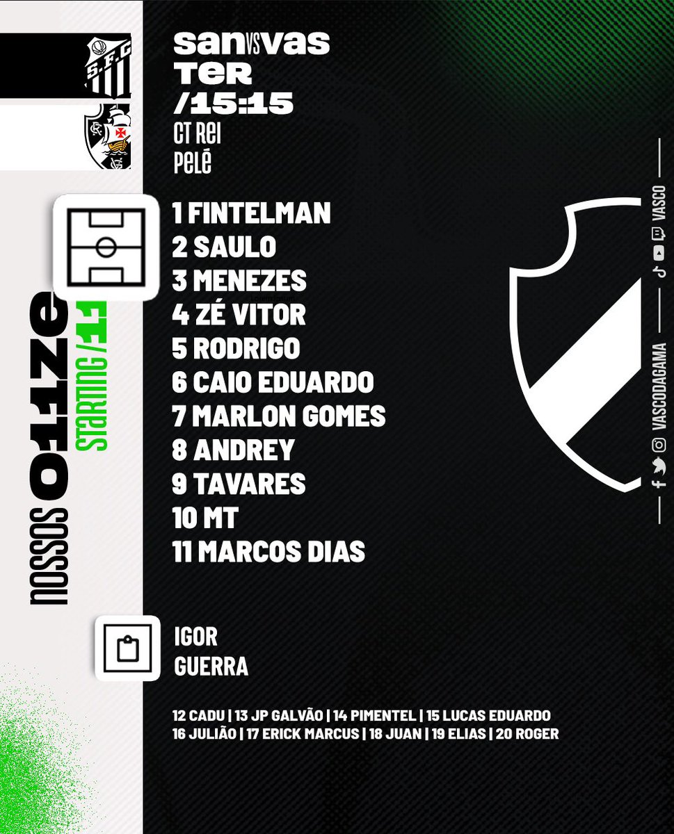 Juniores: Veja a escalação do Vasco para o jogo contra o Santos pelo Brasileiro Sub-20