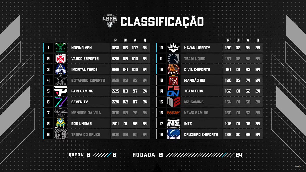 E-Sports: Vasco termina rodada como 2º colocado da LBFF de Free Fire