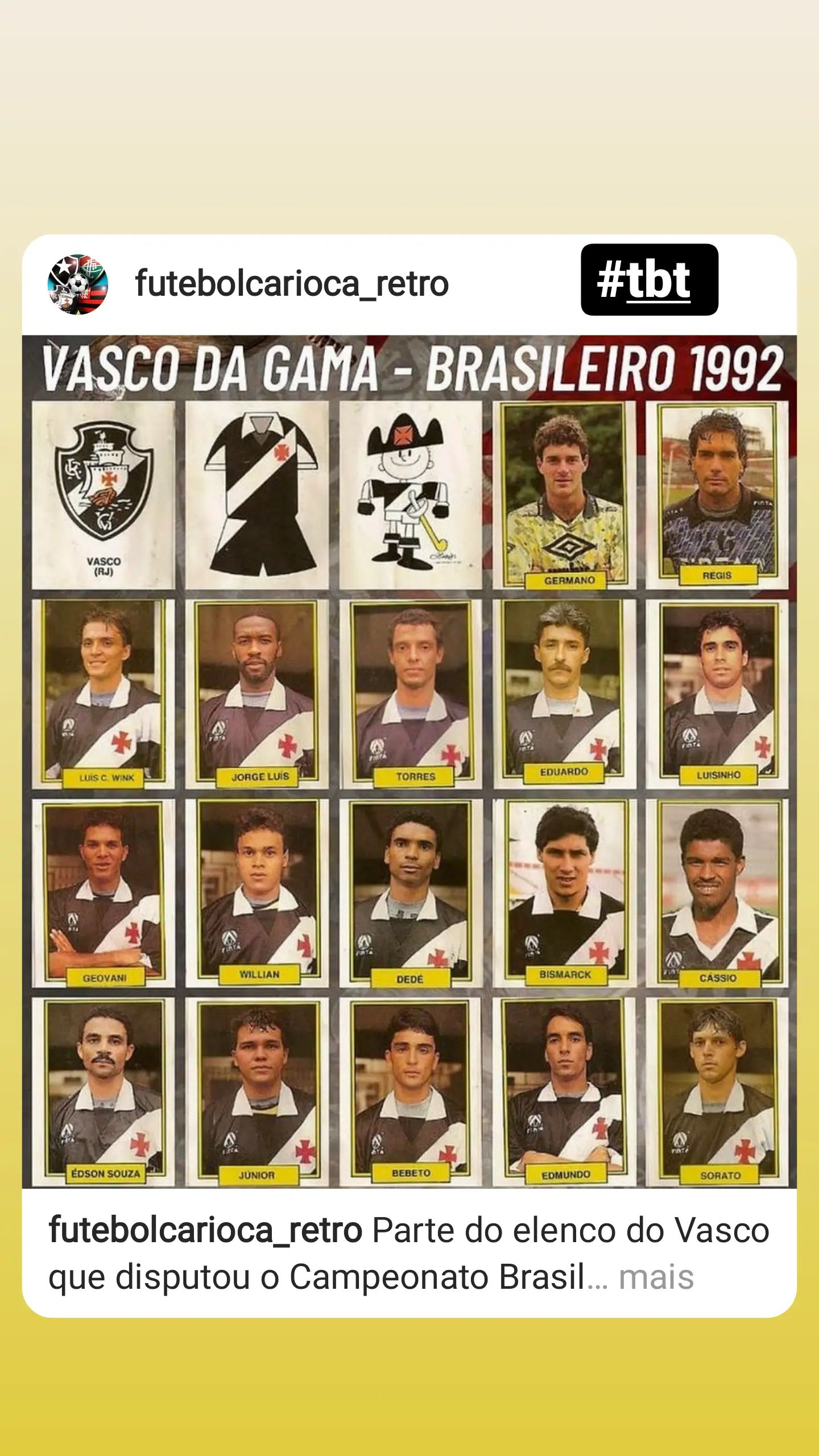 Veja figurinhas do elenco do Vasco no Brasileiro de 1992