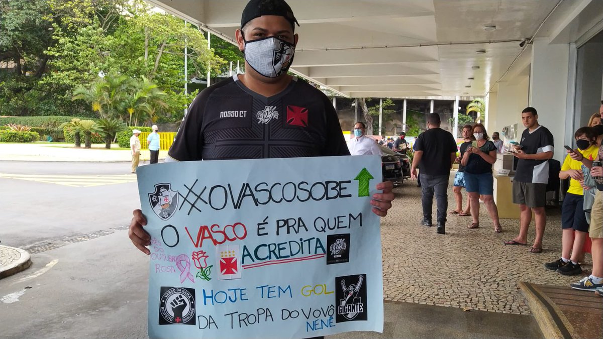 Torcedor apoia o time na saída do hotel do elenco do Vasco