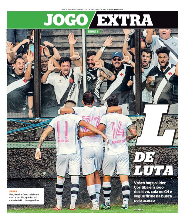 Pelo Brasileiro da Série B, o Vasco derrotou o Coritiba por 2 a 1 em São Januário com gols de Germán Cano e Nenê. Veja as capas dos jornais.