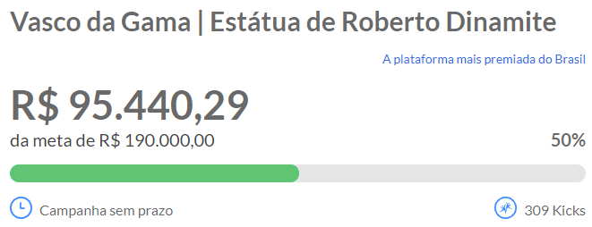 Em menos de 4 horas, campanha de financiamento da estátua de Dinamite atinge metade da meta